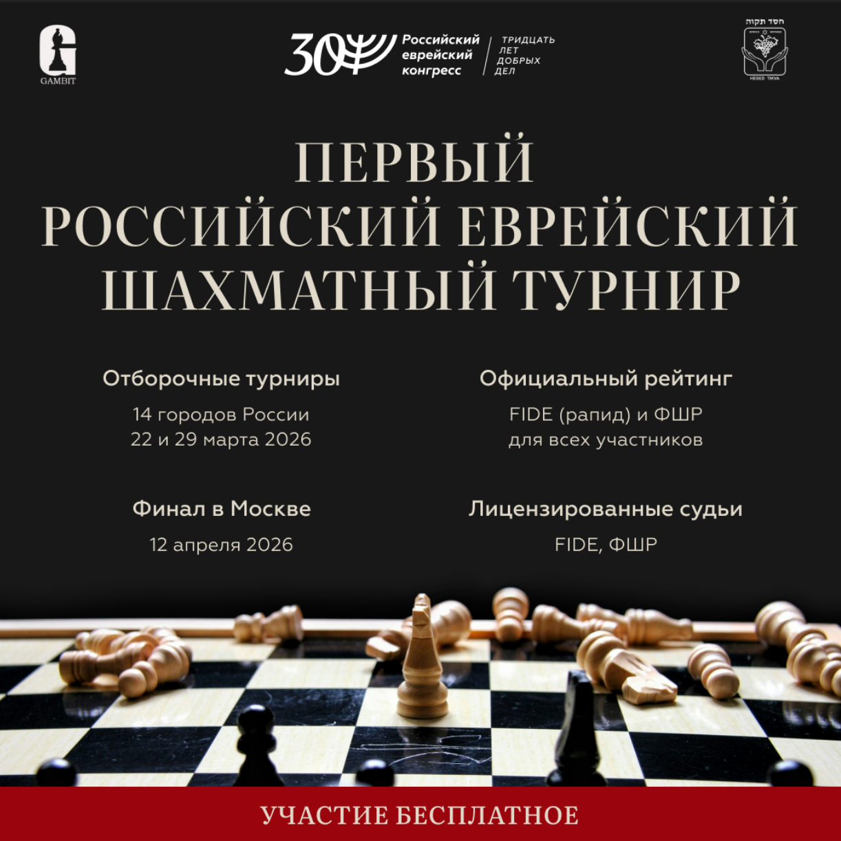 29 марта 2026 года в Брянске на базе спортивной школы по шахматам и шашкам состоится отборочный этап Первого российского еврейского шахматного турнира, приуроченного к 30-летию Российского еврейского конгресса.